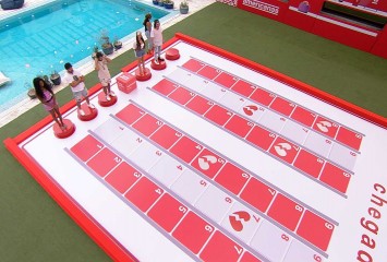 Todos os confinados vão para a área externa da casa do BBB21 para participar de uma ação da Ame...